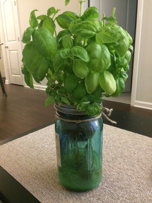 Modern sprout garden jar, basil.